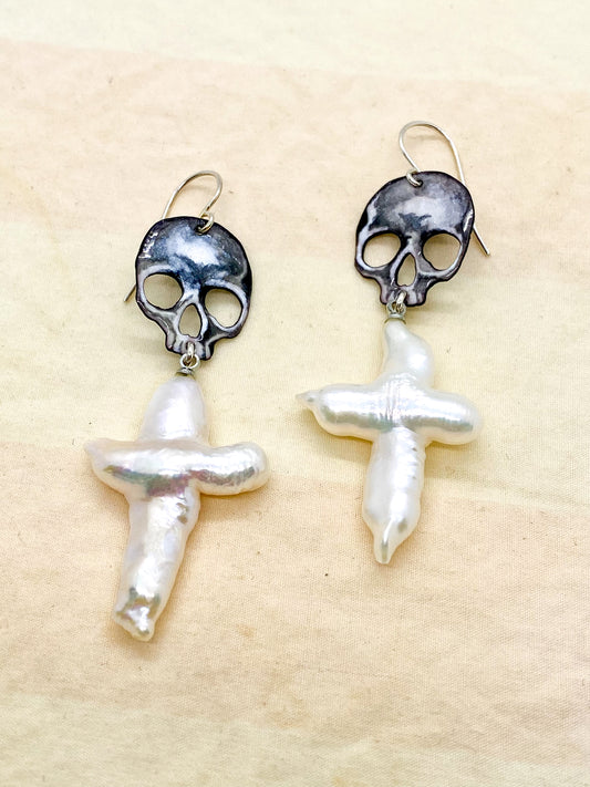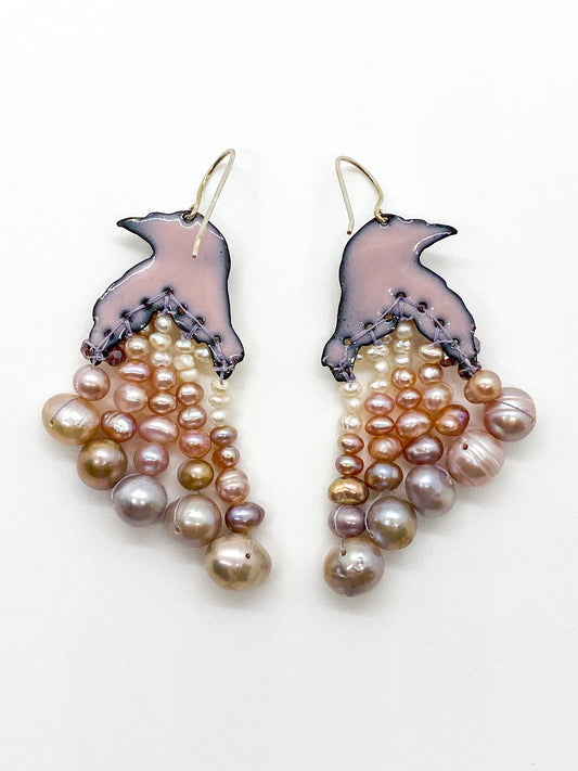 Cascading Pearl Death's Head Moth Earrings