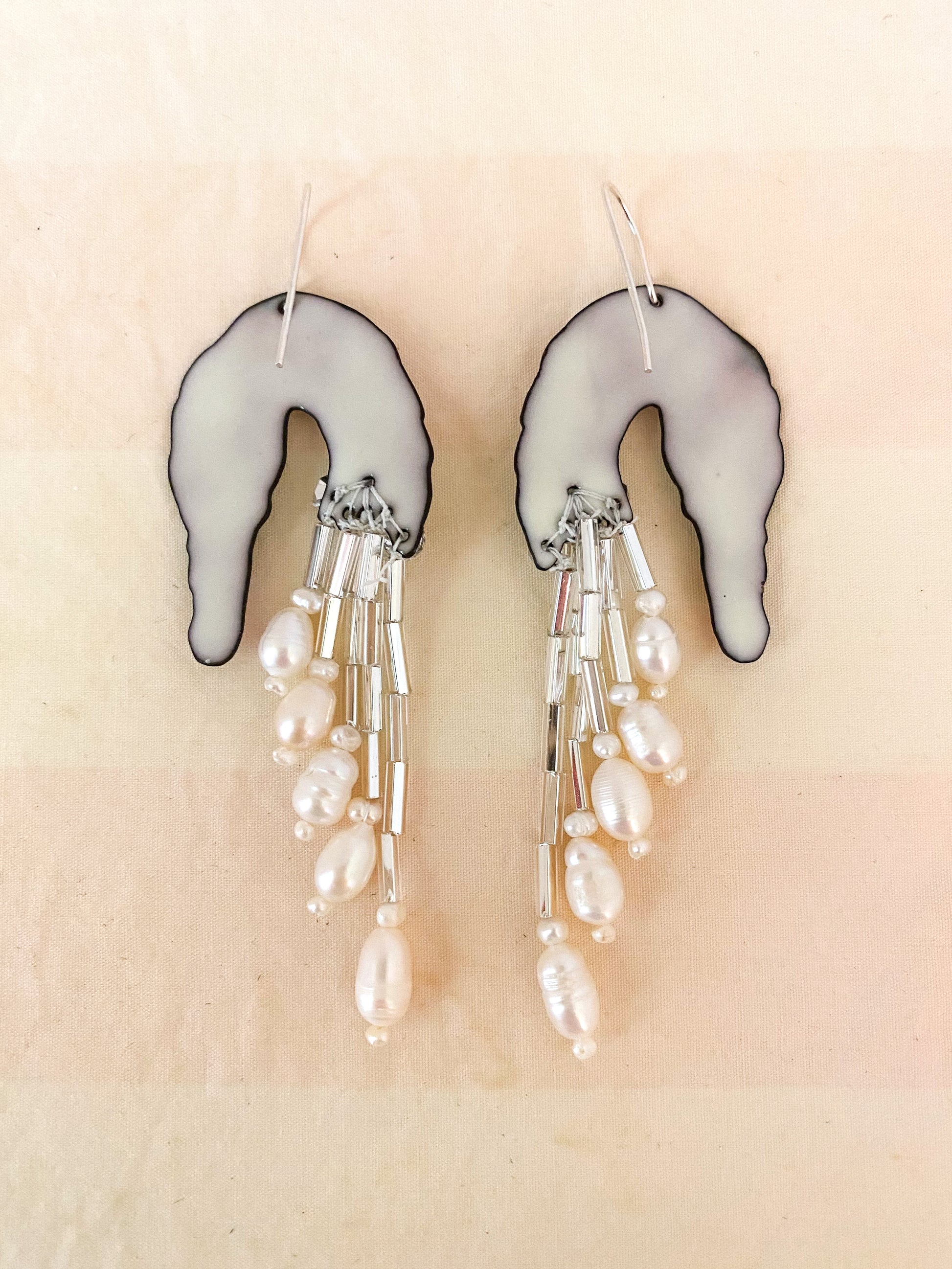 *I hand-paint each individual piece of my jewelry with enamel. The pearls I use are freshwater and thus each one is slightly unique in shape. With these things in mind, please understand each pair of earrings may have slight differences.